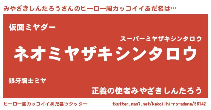 | ヘコむあだ名 | 『みやざきしんたろう(爆)』『みやにー』 |
