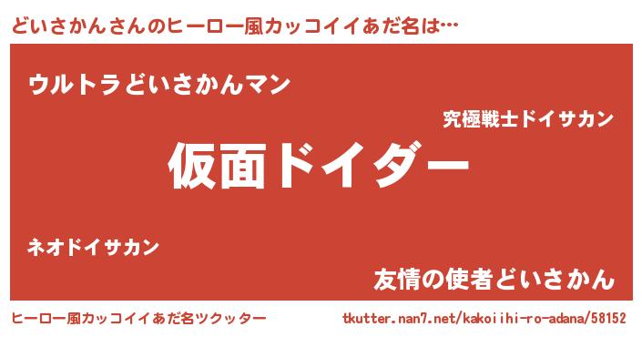 | 意味不明あだ名 | 『住所不定無職どいさかん(7歳)』 |