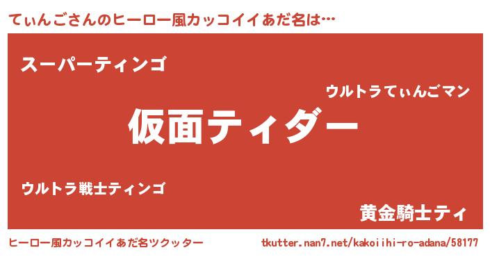 | 男性向けラノベタイトル風あだ名 | 『この素晴らしい世界にてぃんごを!』 |