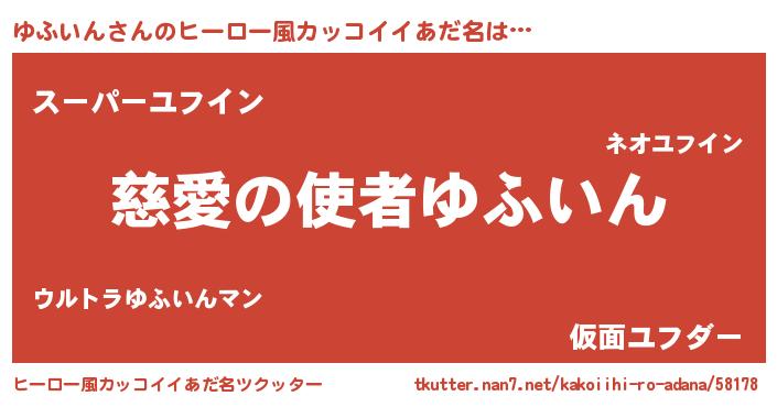 | 女子向けラノベタイトル風あだ名 | 『死神ゆふいんの再婚』 |
