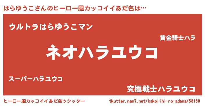 | 男性向けラノベタイトル風あだ名 | 『はらゆうこという概念が存在しない退屈な世界 』 |