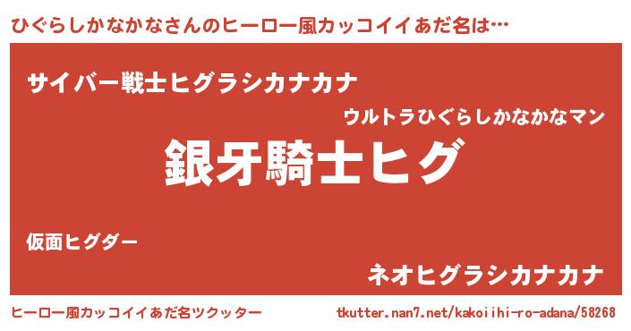 | ポケモン風あだ名 | 『ヒヒグラシカナカナ』『ヒグセウス』 |