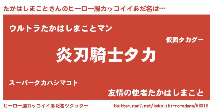 | ポケモン風あだ名 | 『ヒタカハシマコト』『タカハダネ』 |