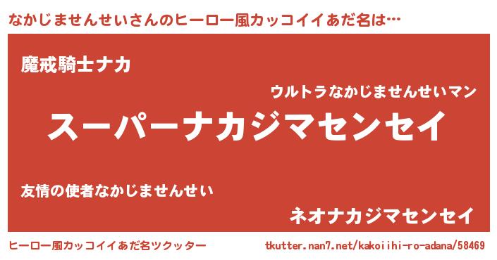 | 男性向けラノベタイトル風あだ名 | 『ナカジマセンセイアートオンライン』 |