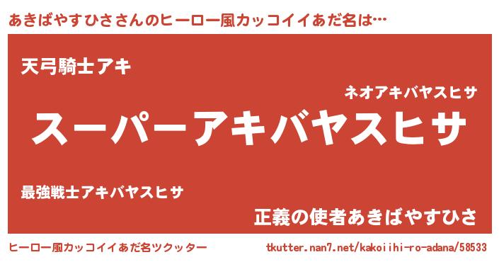| 男性向けラノベタイトル風あだ名 | 『アキバヤスヒサアートオンライン』 |