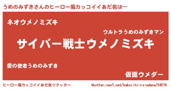 うめのみずきさんのヒーロー風カッコイイあだ名をツクッター!