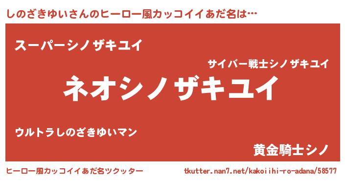 | 女子向けラノベタイトル風あだ名 | 『異世界で失敗しない100のしのざきゆい』 |