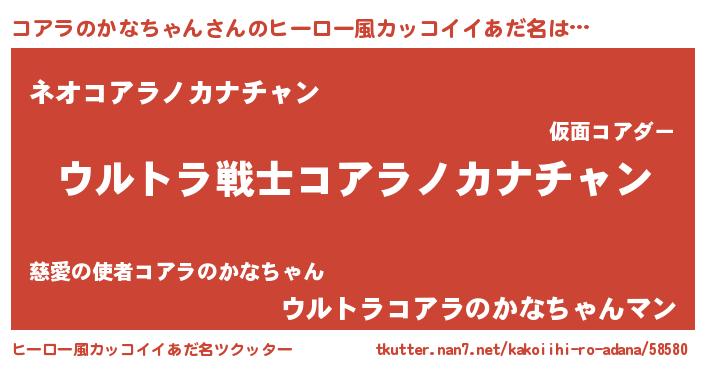 | 女子向けラノベタイトル風あだ名 | 『コアラのかなちゃんアンティーク』 |