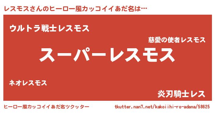 | 男性向けラノベタイトル風あだ名 | 『レスモスの憂鬱』『レスモススレイヤー』 |