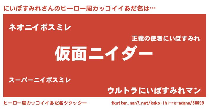 | 男性向けラノベタイトル風あだ名 | 『この素晴らしい世界ににいぼすみれを!』 |