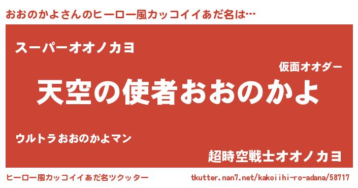 | 男性向けラノベタイトル風あだ名 | 『ノーゲーム・ノーオオノカヨ』 |