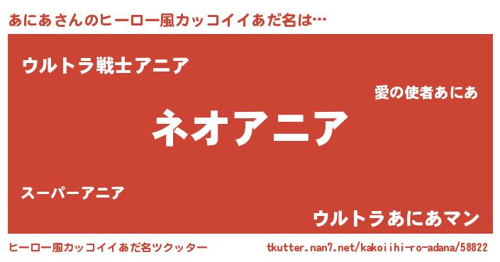 | 意味不明あだ名 | 『永久保存あにあ』『自称あにあ』 |