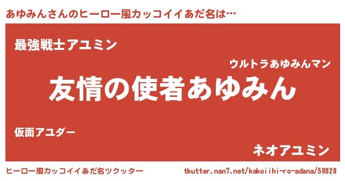 | 男性向けラノベタイトル風あだ名 | 『おまえをオタクにしてやるから、俺をあゆみんにしてくれ! 』 |