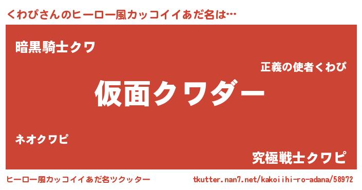 | 胡散臭い通販商品みたいなあだ名 | 『あなたにだけ特別に提供する限定10本のレアな日本酒…その名も「くわぴ」』 |