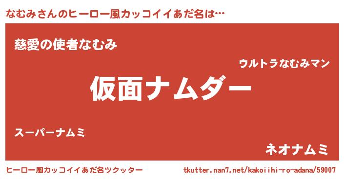 | 男性向けラノベタイトル風あだ名 | 『この素晴らしい世界になむみを!』 |
