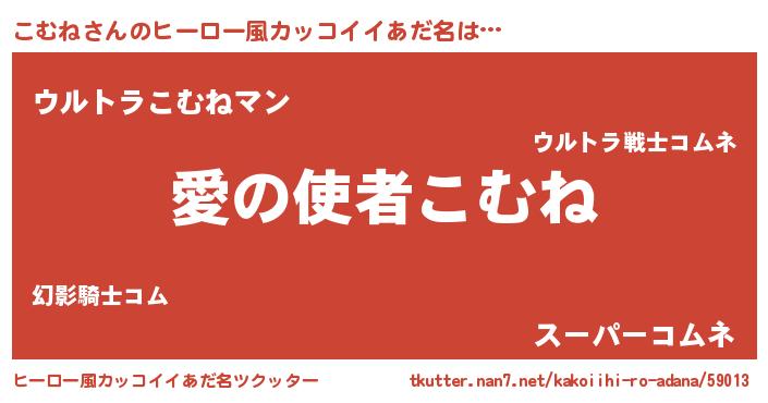 | 女子向けラノベタイトル風あだ名 | 『こむね恋絵巻』『こむねの雑貨屋さん』 |