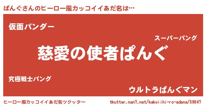 | 男性向けラノベタイトル風あだ名 | 『ぱんぐに滅ぼされるだけの簡単なお仕事です』 |