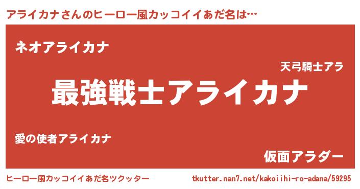 | 男性向けラノベタイトル風あだ名 | 『Re:アライカナから始める異世界生活』 |