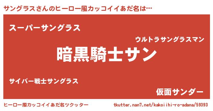 | 胡散臭い通販商品みたいなあだ名 | 『信頼と実績のサプリメント…その名も「サングラス」』 |