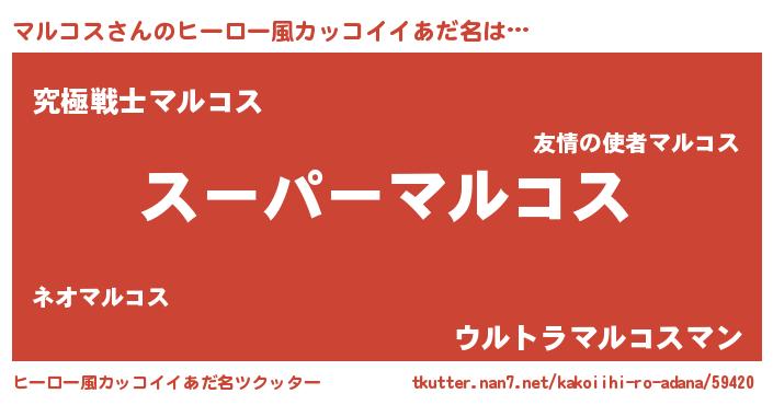 | 男性向けラノベタイトル風あだ名 | 『マルコスアートオンライン』 |