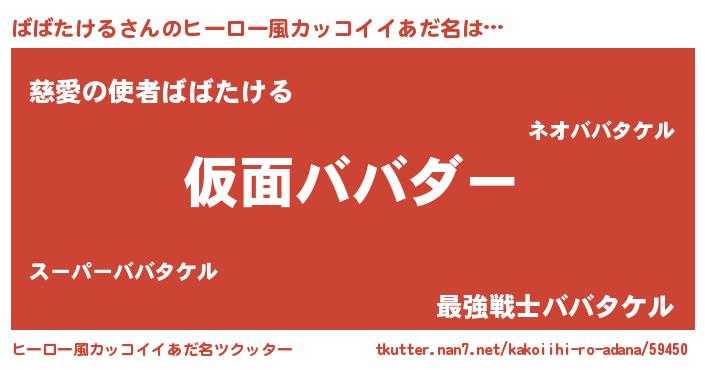 | 男性向けラノベタイトル風あだ名 | 『この素晴らしい世界にばばたけるを!』 |