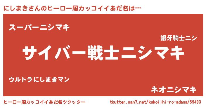 | 男性向けラノベタイトル風あだ名 | 『Re:にしまきから始める異世界生活』 |