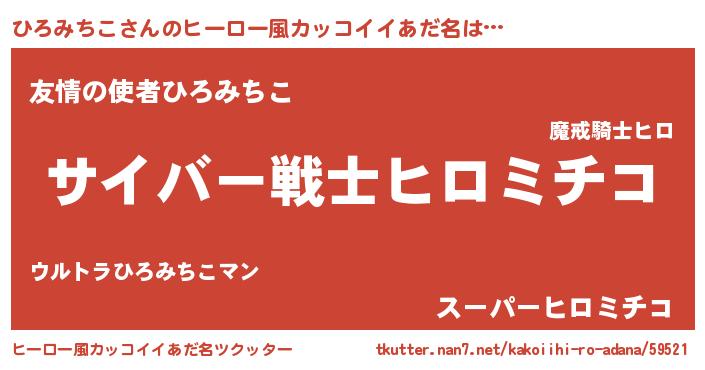 | 男性向けラノベタイトル風あだ名 | 『Re:ひろみちこから始める異世界生活』 |