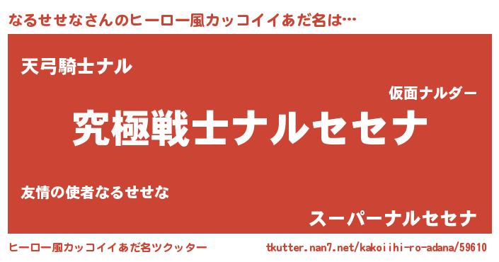 | 男性向けラノベタイトル風あだ名 | 『Re:なるせせなから始める異世界生活』 |
