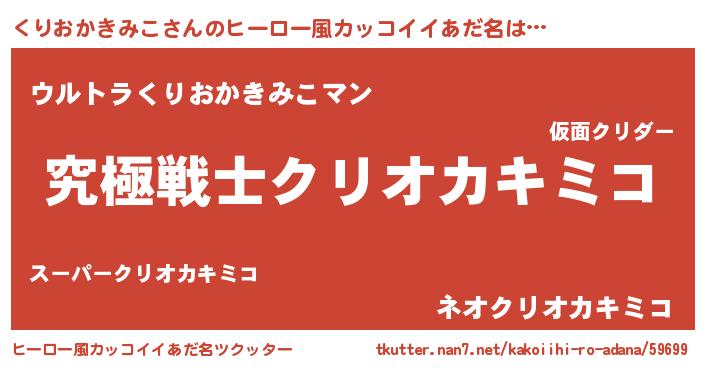 | 女子向けラノベタイトル風あだ名 | 『くりおかきみこストレイドッグス』 |