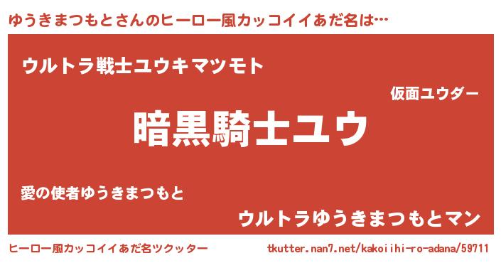 | 女子向けラノベタイトル風あだ名 | 『ゆうきまつもとは平凡を望む』 |
