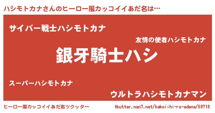 | 男性向けラノベタイトル風あだ名 | 『ハシモトカナの嫁は女の子じゃないと思った?』 |