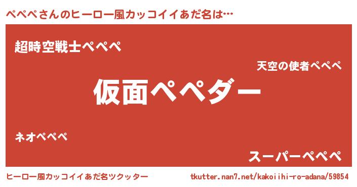| 胡散臭い通販商品みたいなあだ名 | 『あなたにだけ特別に提供する100年もののヴィンテージワイン…その名も「ぺぺぺ」』 |