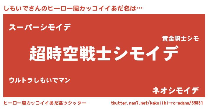 | 意味不明あだ名 | 『自称しもいで』『ペロリンしもいで』 |
