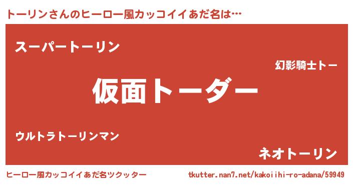 | 男性向けラノベタイトル風あだ名 | 『トーリン~年齢イコール彼女いない歴の魔法使い~』 |