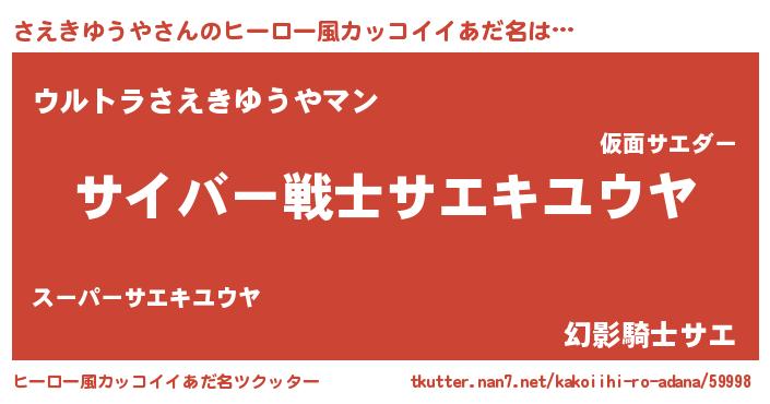 | 男性向けラノベタイトル風あだ名 | 『さえきゆうやに滅ぼされるだけの簡単なお仕事です』 |