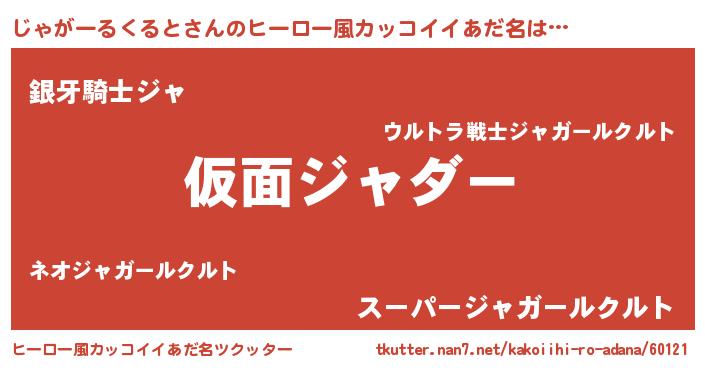| 男性向けラノベタイトル風あだ名 | 『この素晴らしい世界にじゃがーるくるとを!』 |