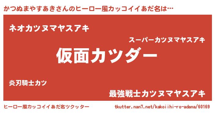 | ヘコむあだ名 | 『かつぬまやすあき(震え声)』『かつもー』 |