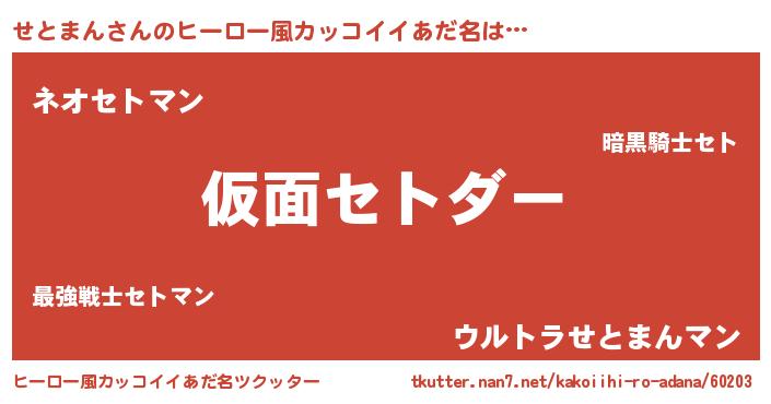 | 伝説のあだ名 | 『古より伝わる勇者せとまん』 |
