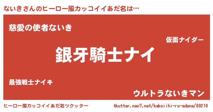 | 男性向けラノベタイトル風あだ名 | 『ないきの嫁は女の子じゃないと思った?』 |