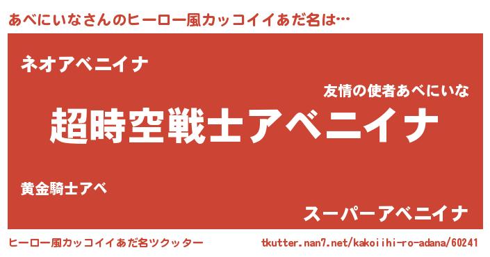 | 女子向けラノベタイトル風あだ名 | 『あべにいななんてお断りですっ。』 |