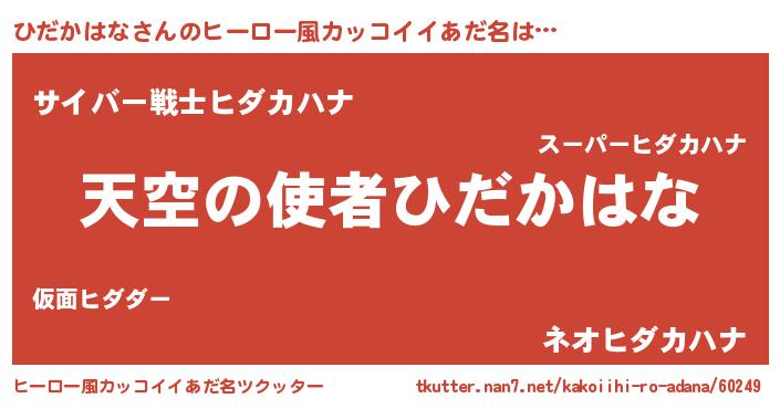 | ヘコむあだ名 | 『ひだかはな(遠い目)』『ひだにゅー』 |