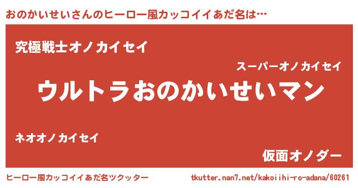 | 意味不明あだ名 | 『おのかいせいフォーエバー』 |