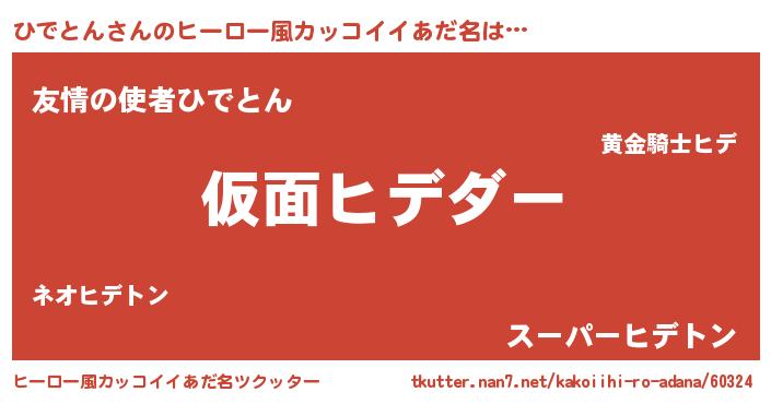| 男性向けラノベタイトル風あだ名 | 『この素晴らしい世界にひでとんを!』 |