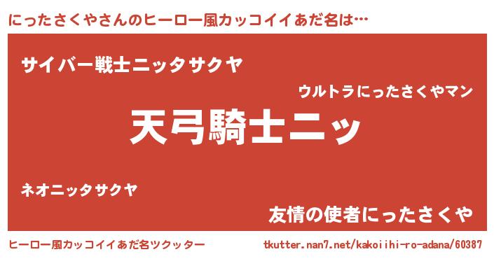 | 男性向けラノベタイトル風あだ名 | 『にったさくやの嫁は女の子じゃないと思った?』 |