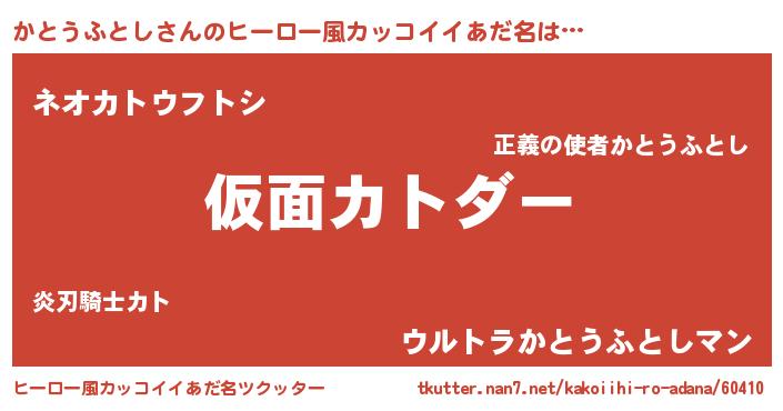 | 意味不明あだ名 | 『住所不定無職かとうふとし(89歳)』 |