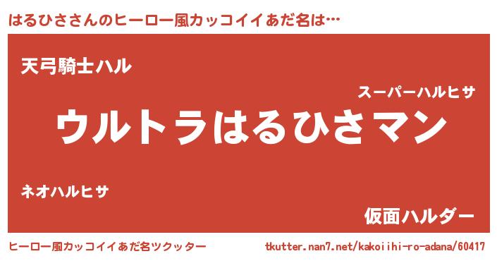 | ポケモン風あだ名 | 『ハルヒダネ』『ヒハルヒサ』 |