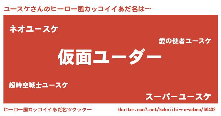 | 男性向けラノベタイトル風あだ名 | 『この素晴らしい世界にユースケを!』 |