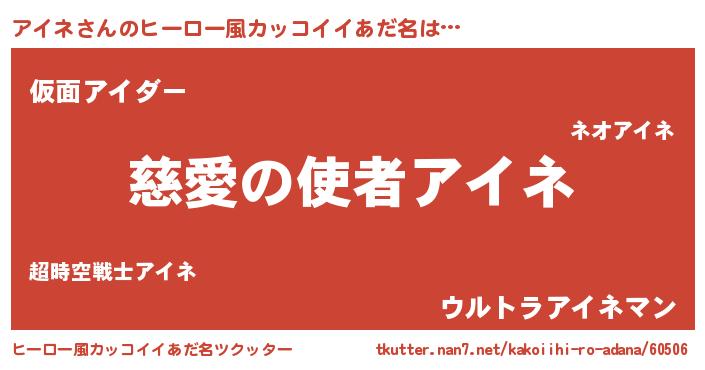 | 女子向けラノベタイトル風あだ名 | 『アイネ恋絵巻』『アイネの玉の輿計画!』 |