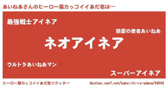 | ヘコむあだ名 | 『あいねあ(笑)』『あいにー』 |