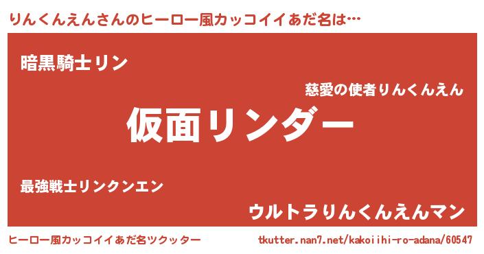 | 男性向けラノベタイトル風あだ名 | 『魔弾の王とりんくんえん』 |